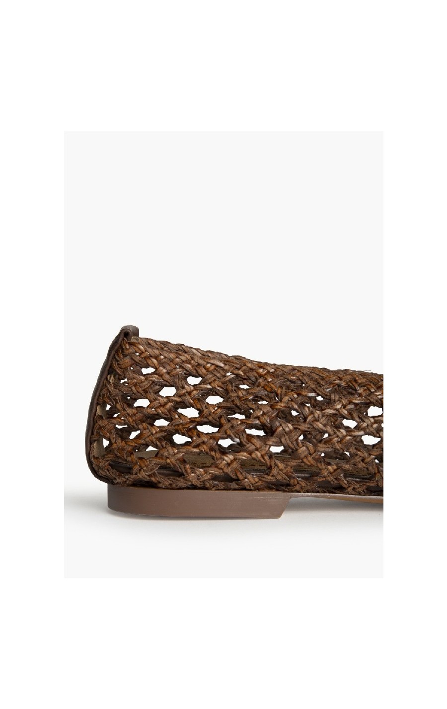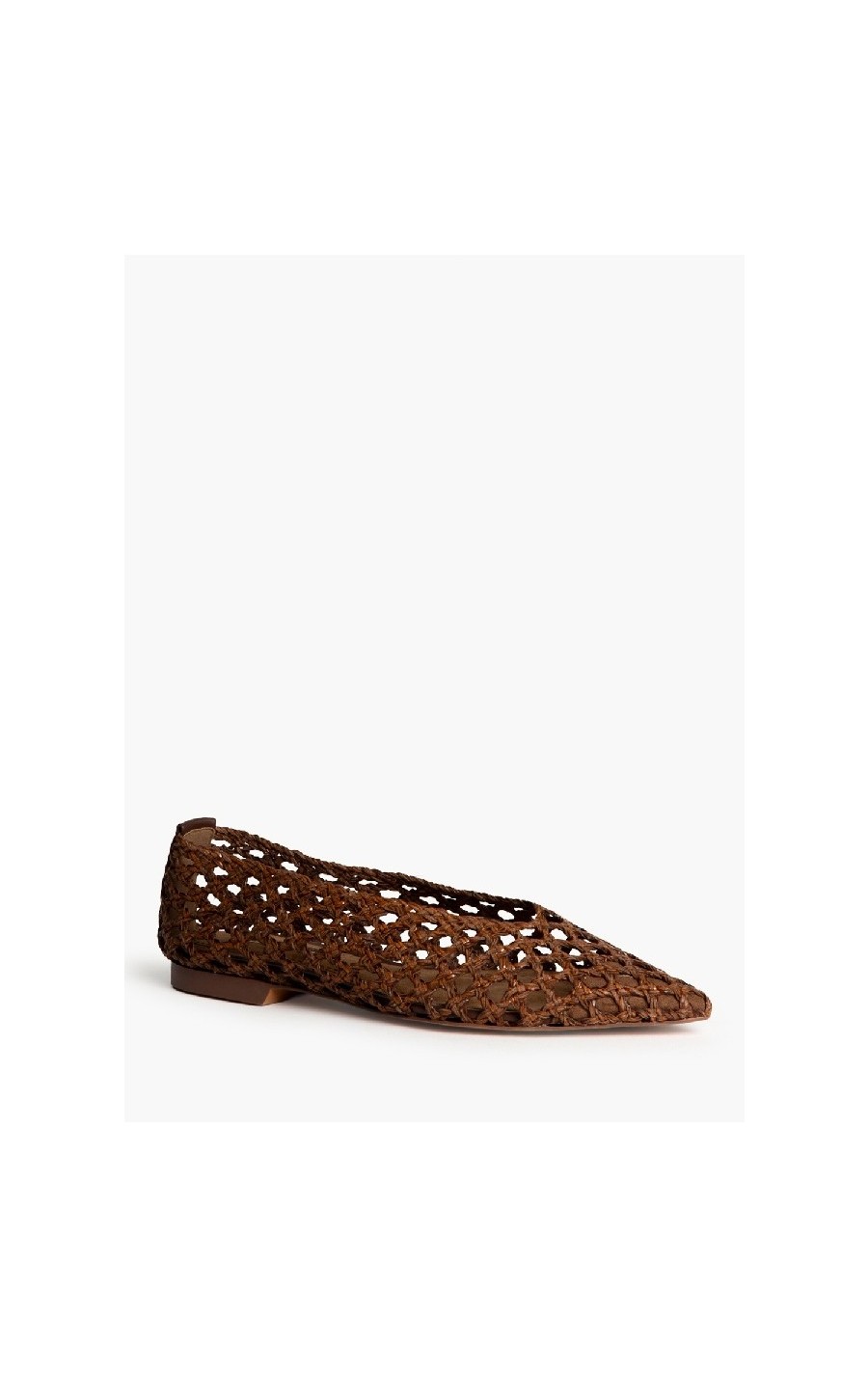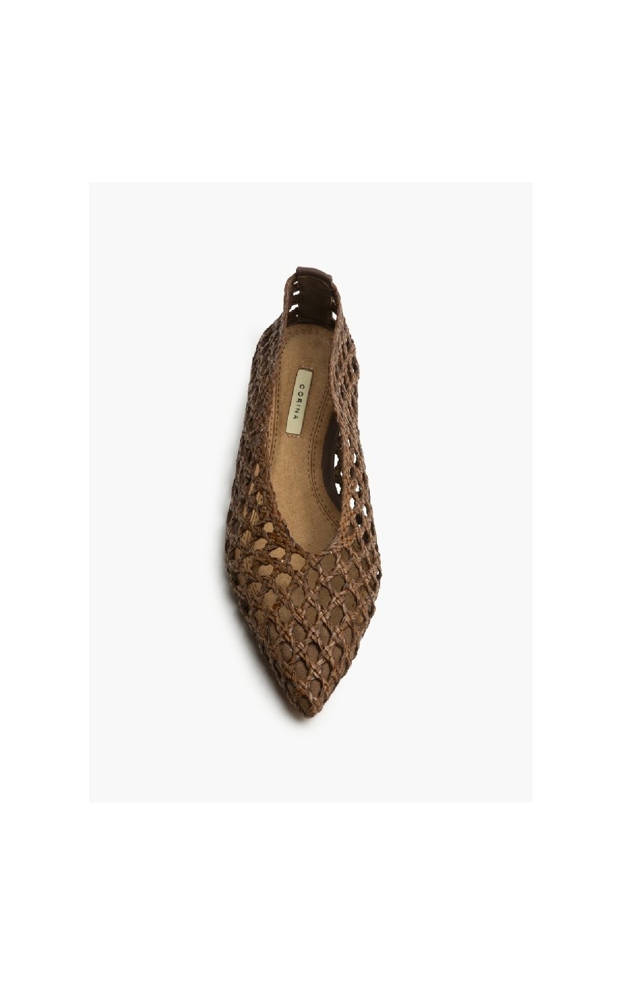 Bailarina plana. Corte trenzado. Acabado en punta. Escote redondo. Altura de la suela 1 cm.