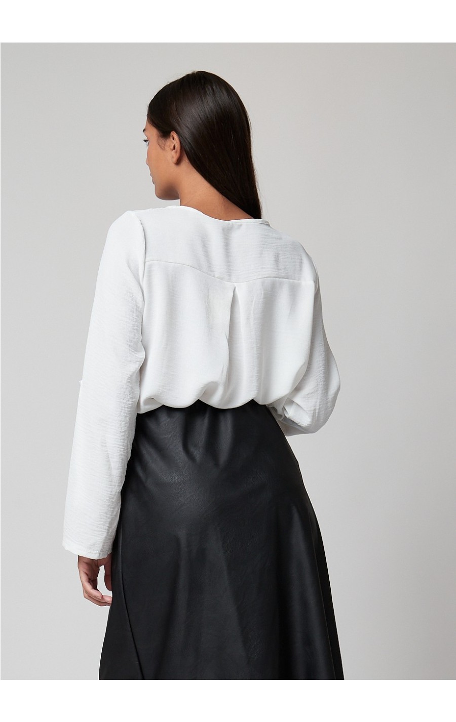 Blusa escote pico y manga con botón para fruncirla. Talla única (desde la tall S hasta la L)