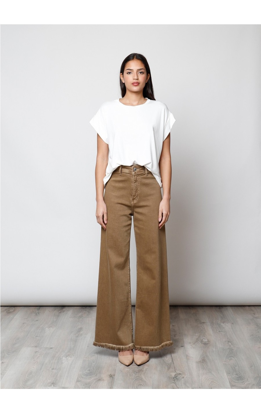 Camiseta holgada en color liso. Tejido con caida. Ancho 57cm, largo 55cm. Composición 95% viscosa, 5% elastano.