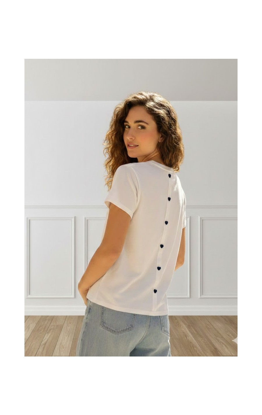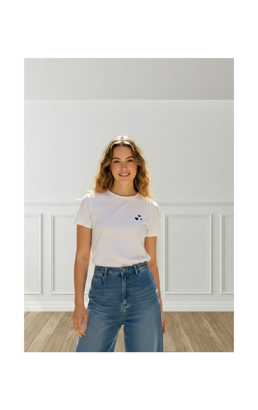 CAMISETA 3 CORAZONES BLANCO MARINO