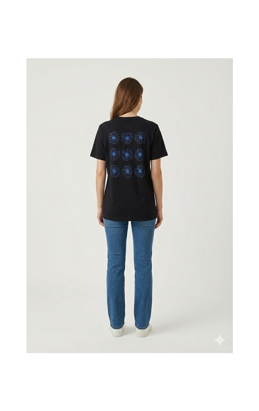 Camiseta con letras en la parte delanmtera y flores en la espalda. Composición: 95% algodón, 5% elastano