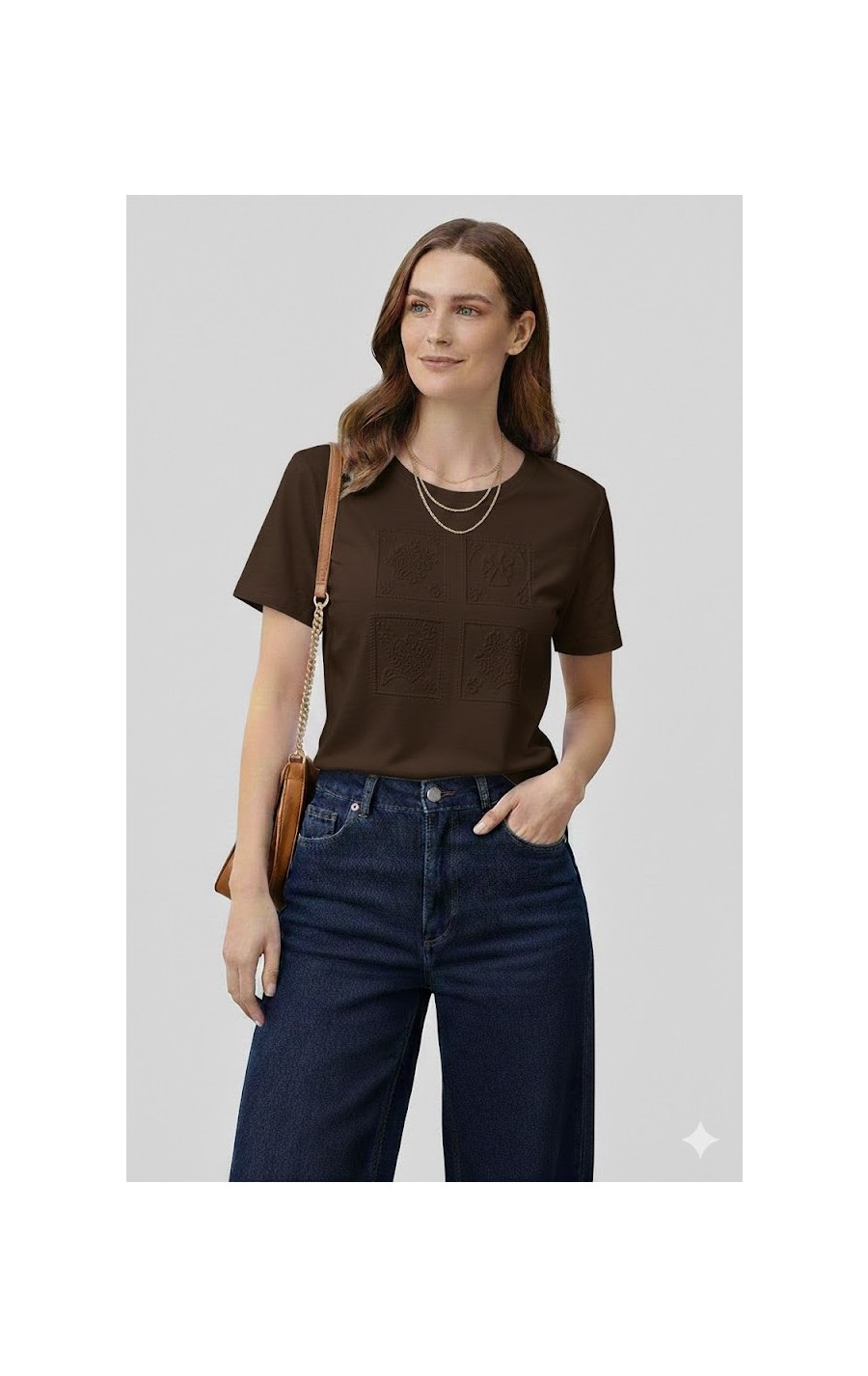 Camiseta con 4 cuadros con plantas en el interior. Composición: 95% algodón, 5% elastano