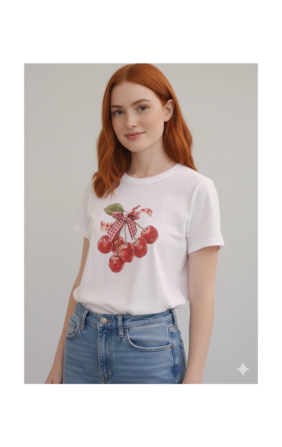 Camiseta con cerezas y lazo de vichy