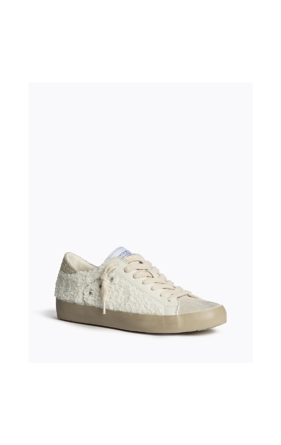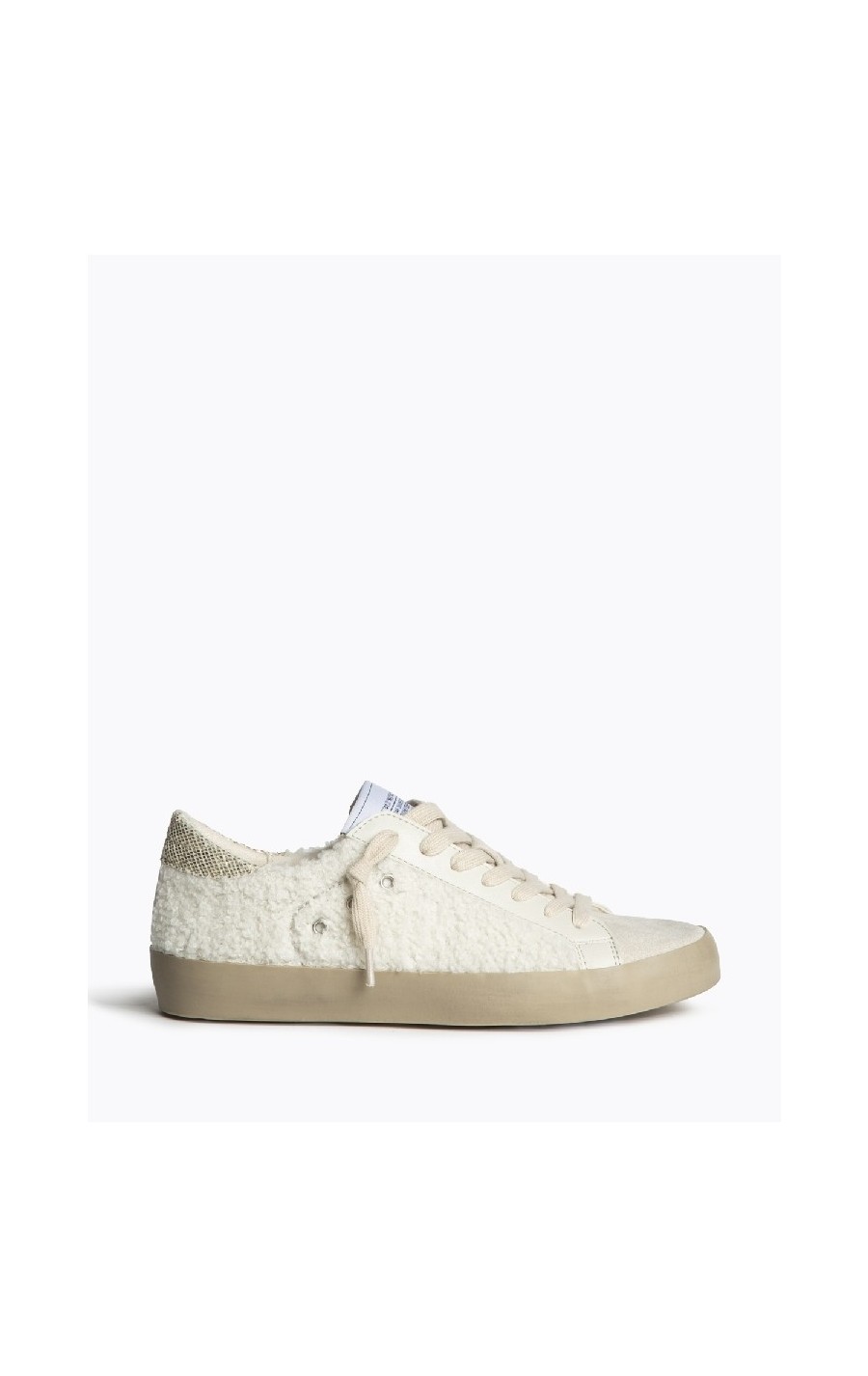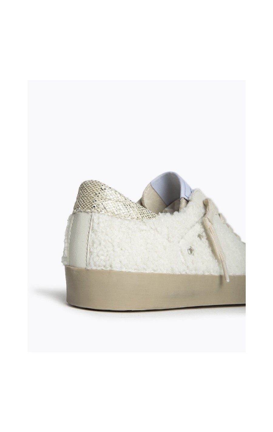 Zapatilla deportiva estilo retro. Cierre mediante cordones de siete pasadas. Corte con acabado efecto borreguito. Altura de la suela 2,5 cm.