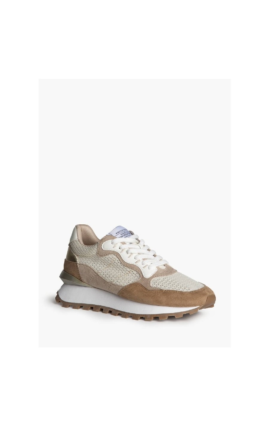 Zapatilla deportiva estilo running. Cierre mediante cordones de seis pasadas. Corte en combinación de materiales. Suela con plataforma dentada. Altura de la suela 3,5 cm.