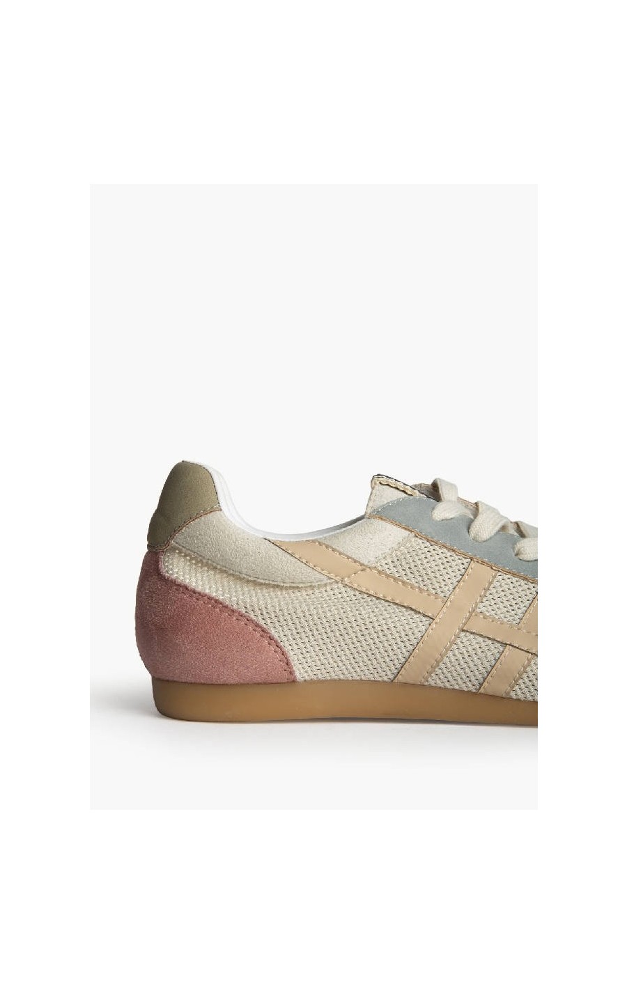 Zapatilla deportiva estilo retro en combinación de materiales. Cierre mediante cordones de siete pasadas. Altura de la suela 2,5 cm.