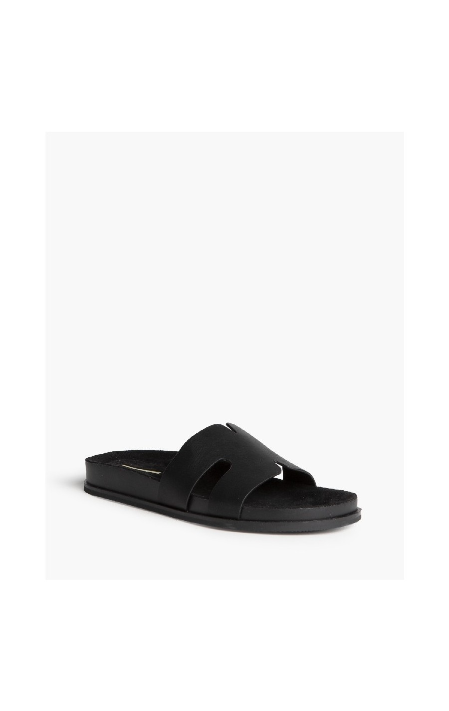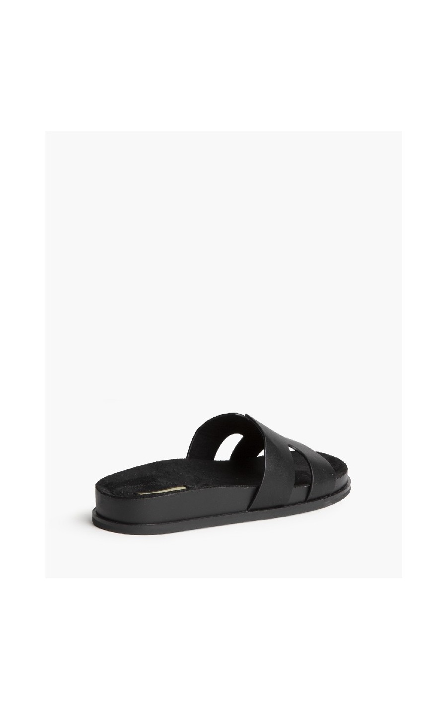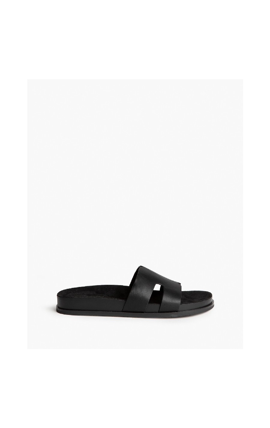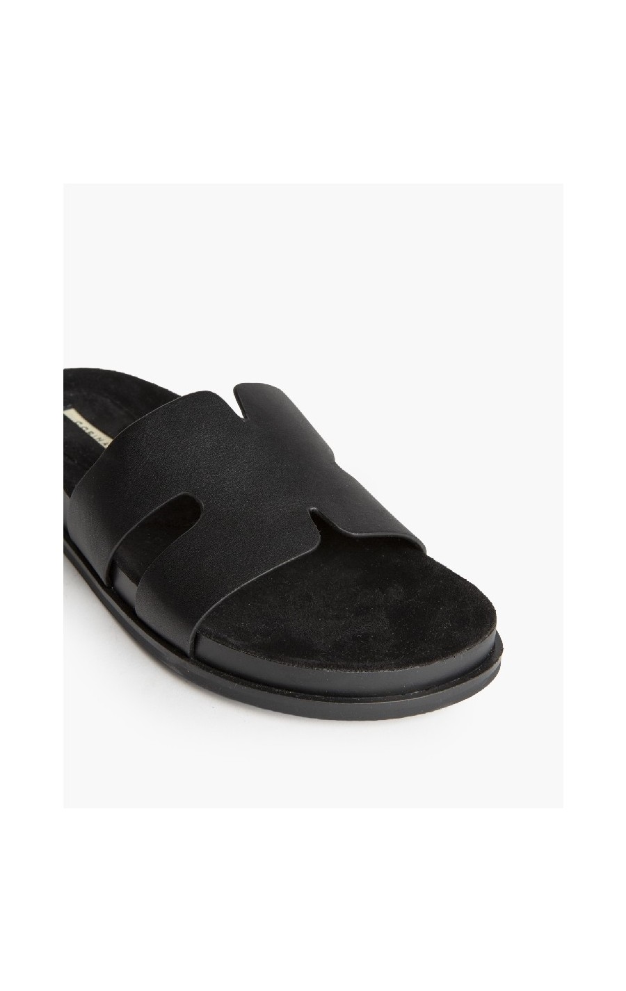 Sandalia plana, corte de pala, con cortes simetricos. Plantilla ergonómica. Ecopiel. Altura de la suela 3 cm.