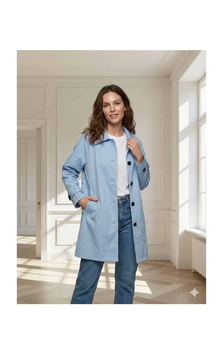 TRENCH LISO CELESTE